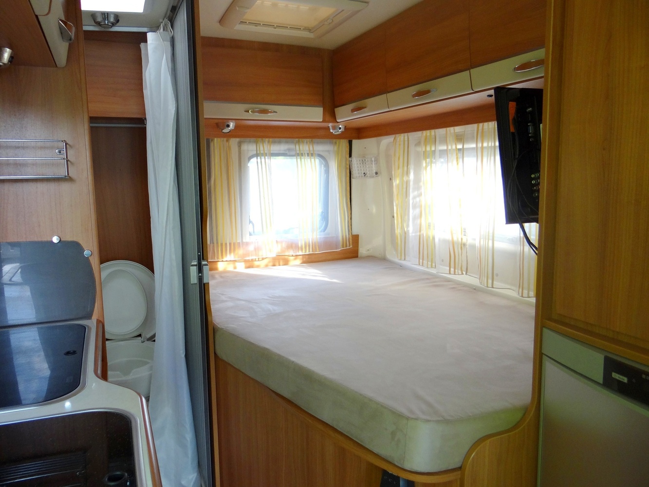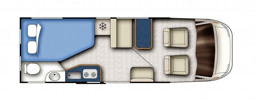Situato nella parte posteriore su uno dei lati del veicolo, questo letto occupa meno spazio di un letto centrale ma è altrettanto confortevole.