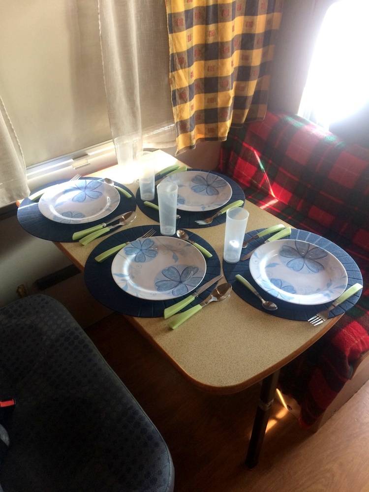 Equipada com: Rádio com USB 3 camas sempre feitas, uma de casal, 2 em sistema de beliche. Kit de cozinha (panelas, frigideiras, pratos, copos, talheres, cafeteira para café de lume, alguidares, caixas, panos, toalhas, pegas, detergente da loiça, esponja, pano... Tudo o que é necessário numa cozinha). Fogão a gás, Frigorífico a gás e 220V Água quente para cozinha e casa de banho, gás incluído Kit de limpeza (vassoura, balde e esfregona. Pano do pó e produto para móveis. Pano, esponja, luvas, sacos do lixo e produto para WC. Esponja e pano para cozinha e detergente de loiça e sacos do lixo, Luvas para descarregar cassete de WC) Casa de banho com duche separado Liquido para sanita incluídas Mangueira para abastecimento de deposito de água limpa (o depósito de água limpa vai cheio) Toldo ao ar livre, Mesa exterior com 5 cadeiras Capa de sol para vidros Painel solar