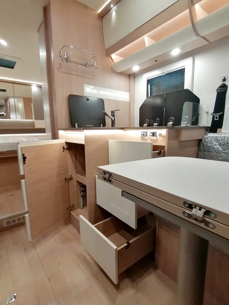 Situato nella parte anteriore al di sopra dei sedili di guida ed accessibile tramite una scala. Molto comodo e permette di preservare lo spazio abitativo.