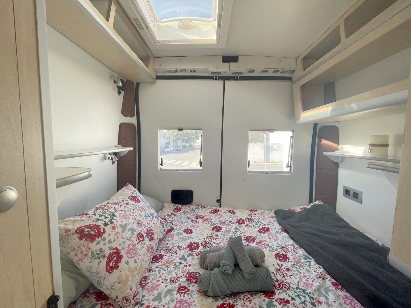 It was designed with plenty of storage space, but also with living space. Ideal for two people, although if we assemble the bunk, they can travel and sleep 4.