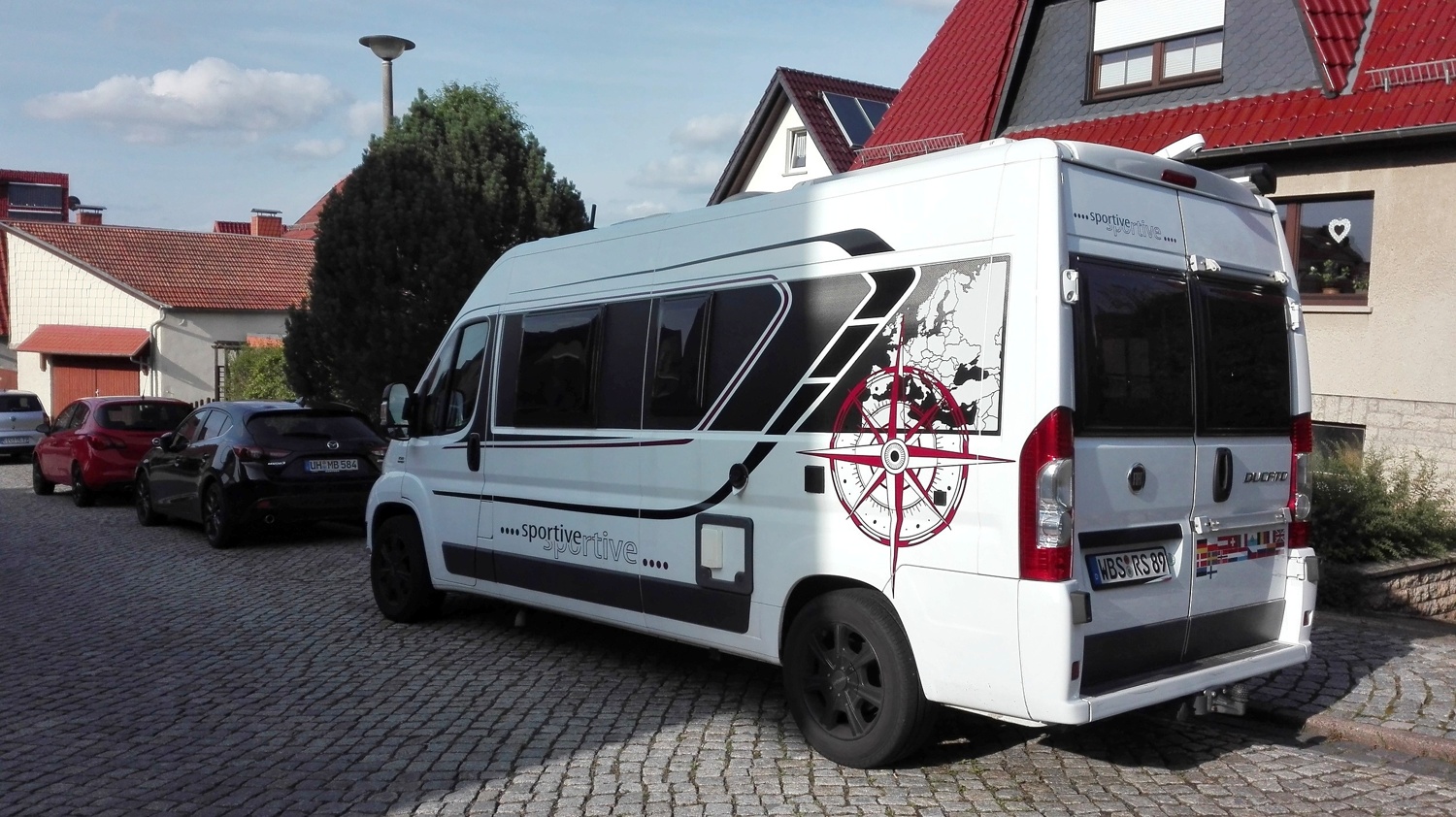 Der Pössl ist ein kleines Wohnmobil, das für 2 Personen ideal für Rundreisen ist: jeden Tag woanders, alles Wichtige dabei, wendig (und billig bei Fährfahrten wegen der Gesamtlänge von knapp unter 6 Metern), voll ausgestattet und strom-autark. Dank einer gut proportionierten Solaranlage und Wechselrichter lassen sich auch 230 V-Geräte ohne Landstrom nutzen. Und für die Information sowie Entertainment ist eine Sat-TV-Anlage an Bord. Und wer einen Anhänger mitnehmen will/muß: eine Anhängerkupplung ist dabei. Ausserdem ist das Fahren mit Automatikgetriebe und Tempomat sehr entspannt. Durch einen LPG-Gastank entfällt ein eventuell notwendiger Gasflaschentausch, und in der kalten Jahreszeit kann ohne Gasprobleme durchgeheizt werden. Für die Urlaube im heißen Süden gibt es eine Klimaanlage, die das Mobil mit 230 V auf angenehme Temperaturen bringt bzw. der Dachventilator mit 12 V-Betrieb, der den Innenraum automatisch auf erträglichen Temperaturen hält. Wir haben viel Wert darauf gelegt, daß das Mobil eine Vollausstattung hat: in der Küche, im Bad, für den Landstromanschluss, das Trinkwasser, die Chemie-Toilette, bis hin zum bereits installierten Autopass für Norwegen und vielen kleinen Helferlein im Camper-Alltag. Denn: sehr üppig ist der Platz bei einem 6-Meter-Fahrzeug natürlich nicht und deshalb haben wir uns Gedanken gemacht und Lösungen gefunden.