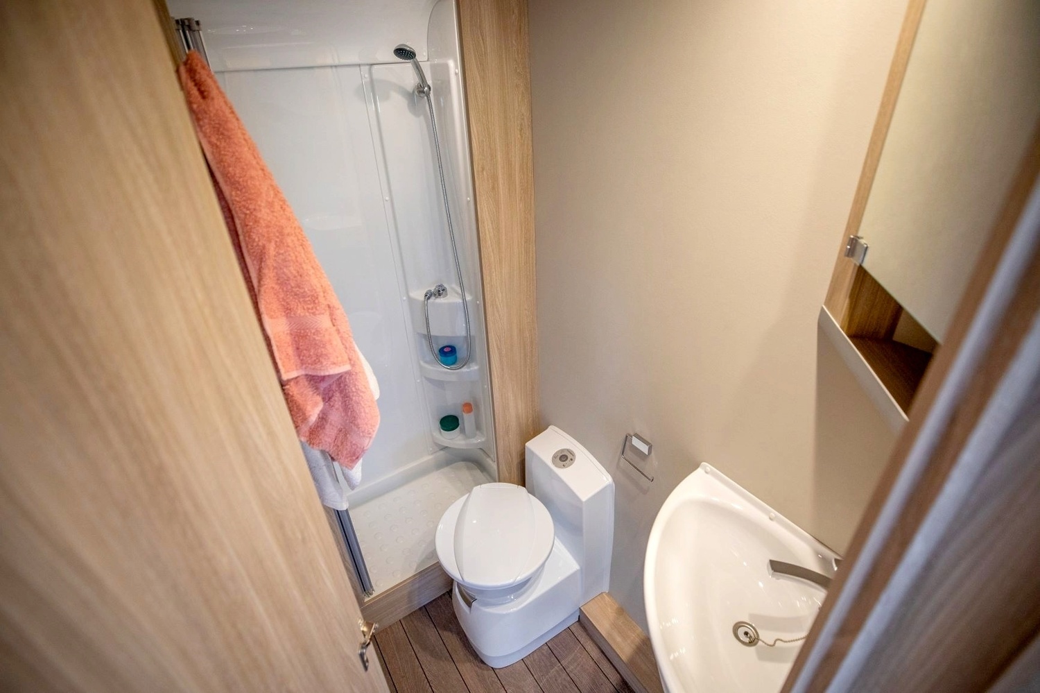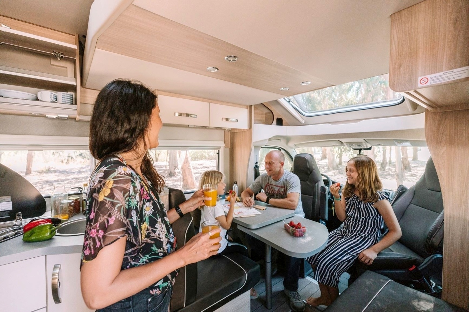 Questo modello ha tutte le caratteristiche necessarie per vivere un'esperienza incredibile on the road! Include un kit cucina, un frigorifero (145 L), cucina con lavello, fornello a gas integrato, tavolo da pranzo interno e kit di pulizia. Puoi anche ricaricare il tuo telefono cellulare (o altri dispositivi) e ascoltare la tua musica preferita perché il modello include anche una radio con porte AUX e USB.