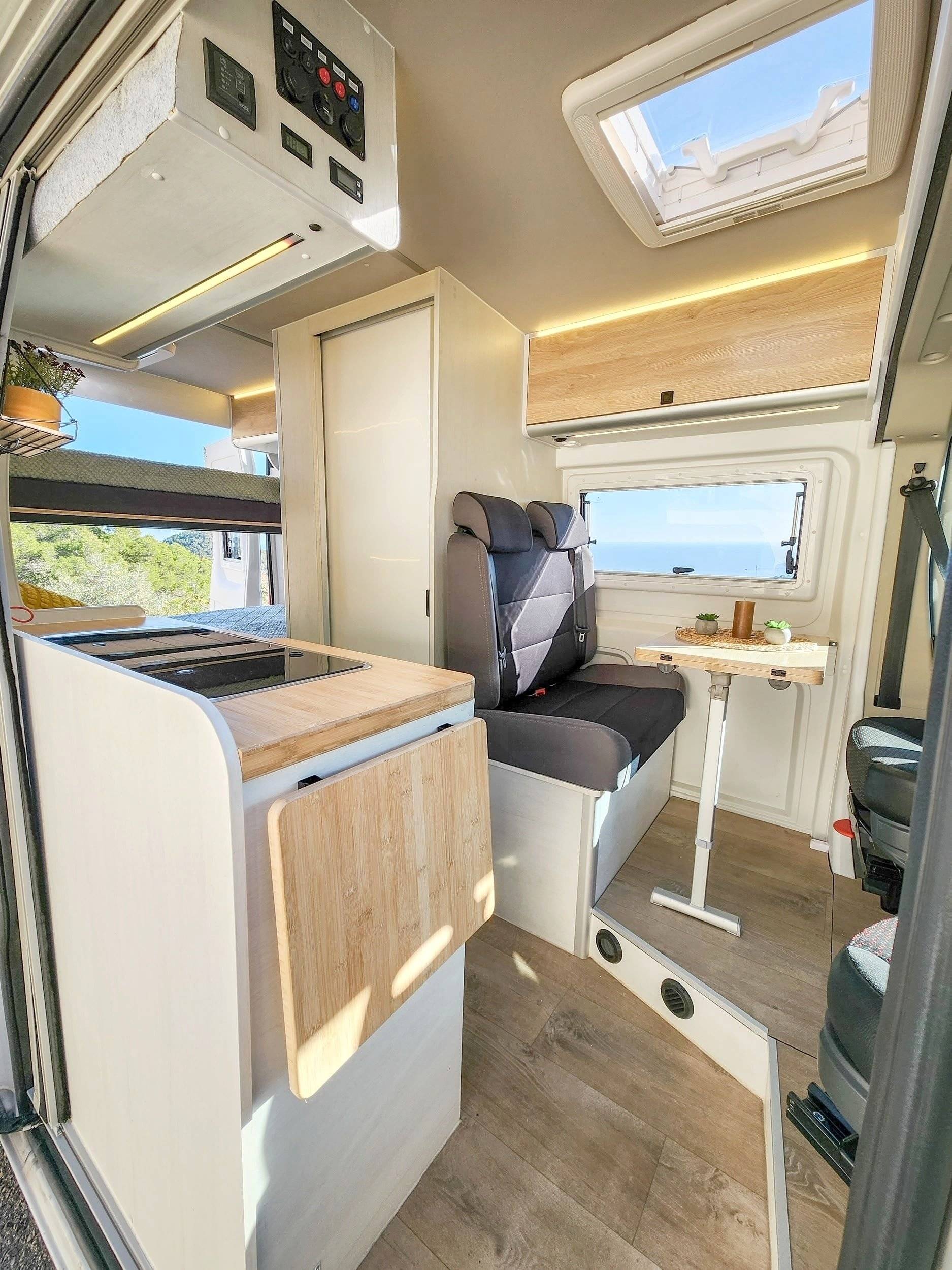 It is a very nice and new van, camperized in 2024. With many openings and very clear. It has an electric battery that is one of the largest that you can find in this type of vehicle, 280 Ah. With 300W solar panels. The toilet is removable, and therefore you will only have to take it out to use it, the rest of the time it is hidden to have a larger bathroom. Mosquito net on sliding door. Hair dryer. Reversing camera. LEDs adjustable in intensity. We have a baby seat. And many other extras! If you have any questions, don't hesitate to ask!